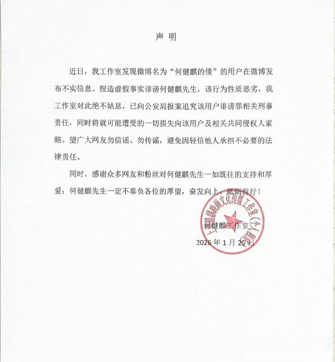 事情发酵后,何健麒工作室第一时间发声明,说这是恶意造谣,已经报警处理。可网友们并不买账,毕竟这已经不是他第一次翻车了。